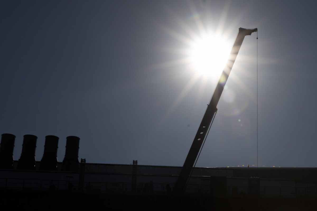 The sun is shining behind a crane at the top of the new Foundation Sciences building at the southern end of the campus on November 18, 2020 in Ball State. The new building is planned to replace the original Cooper Science Complex built in the late 1960s. Jacob Musselman, DN