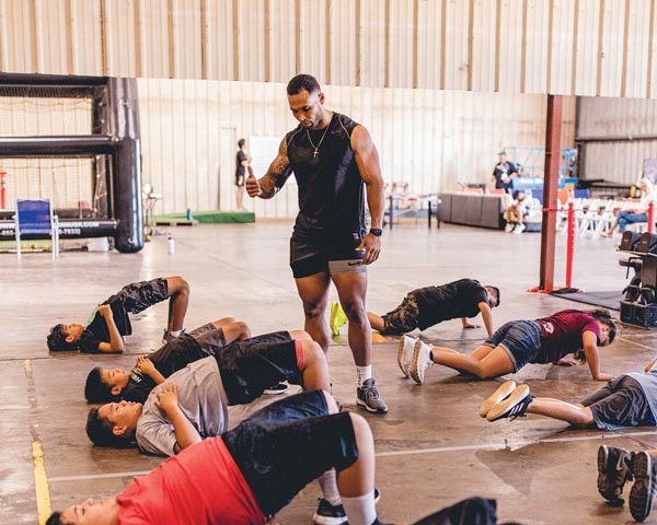 Jojo Dixon is shown training athletes at his Dickson Performance facility in Kahului. Dixon, a Baldwin High School graduate who played at the University of Idaho for several years and worked professionally for more than a year to bring the ESPN 300 football camp to Maui - the camp is scheduled for July 2 at King Kekaulike Stadium. CIRUS PERRI photo