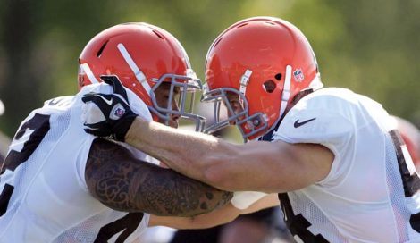 Dixon (left) and his colleague at the Jacobs Line fight during training at the Cleveland Browns Camp on July 29, 2012. Dixon spent time with the Browns, Jaguars, Jets, Cardinals and Chiefs. Photo AP file