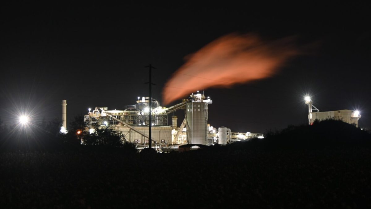 Envi’s wood pellet factory in Northampton County, North Carolina, was shown at night. The company also runs a factory in Waycross, Georgia, and plans to expand further. (David Borax / VFAE)